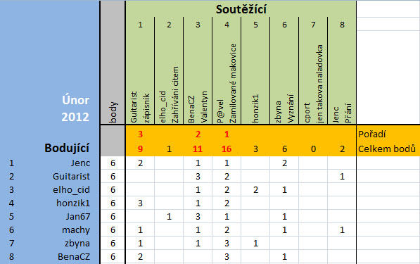 Bodování bude probíhat 1. 3. - 12. 3. 2012
